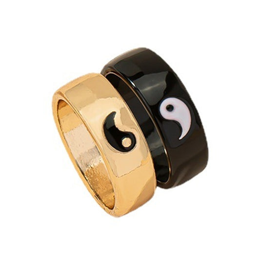 2Pcs Creative Yin Yang Gossip Ring Set for Women Men Couple