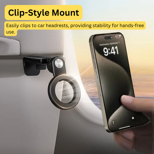 360° Rotating Magnetic Phone Clip Holder - Adjustable Car Headrest Mount for Magsafe iPhone 15/14/13