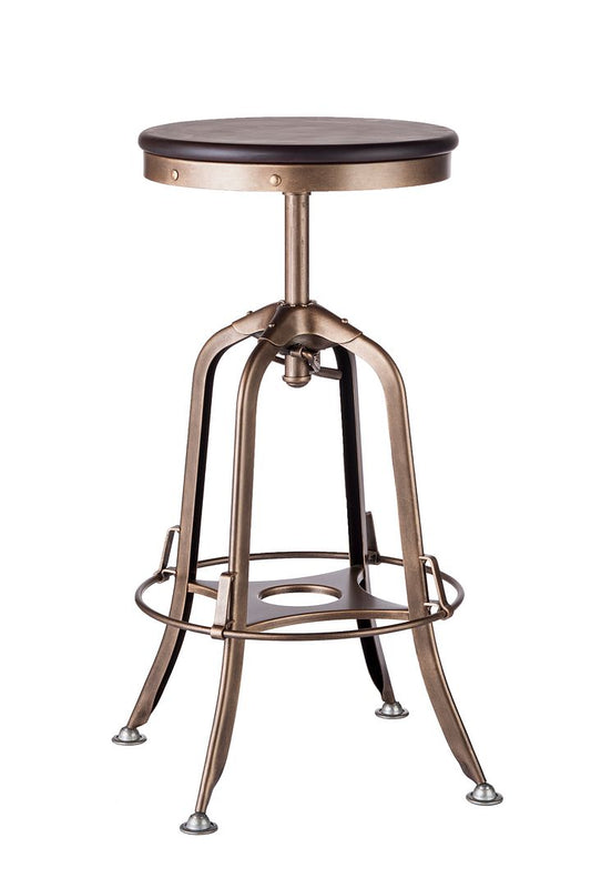 Industrial Wooden Height Adjustable Swivel Bar Stool - French Brass