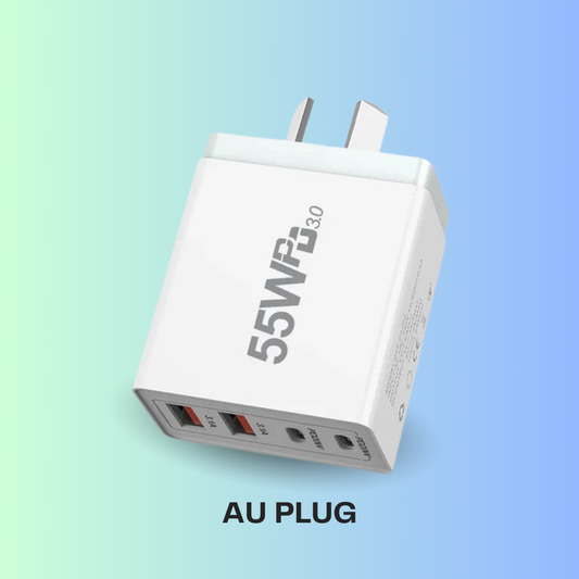 65W USB-C Quick Charging Plug (AU/EU/UK/US) – Fast PD Charger for iPhone 14, Xiaomi, Huawei, and Samsung