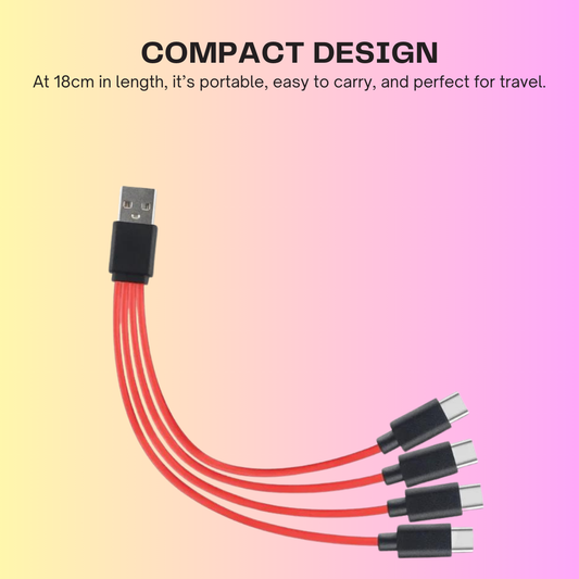 USB Type A to 4 Type-C Cable Cord Splitter For Phones Laptops and Tablets