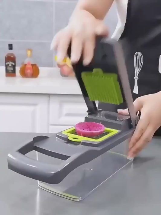 Vegetables Slicer 13 in 1 Multi-function Kitchen Tool - Slice, Dice, Shred, and Grate with Built-in Basket