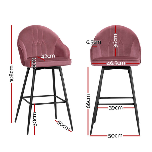 Artiss Set of 2 Bar Stools Kitchen Stool Swivel Chair Gas Lift Velvet Chairs Pink Nessah
