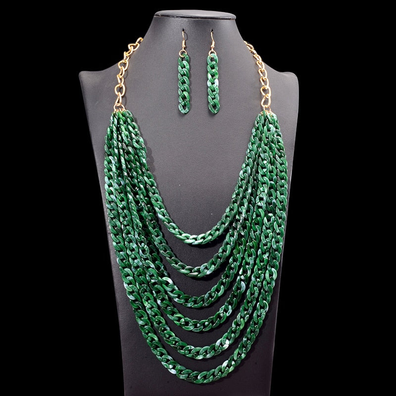 Experience the emotions evoked by the Artisanal Multi-Layered Acrylic Necklace and Earrings Set as it adorns your neckline. Let the layers of acrylic resonate with the layers of your own life, symbolizing the complexities, depth, and beauty within you. The ethnic charm and African-inspired design pay homage to cultural heritage and traditions, allowing you to connect with a sense of history and belonging. Wearing this necklace is an expression of appreciation for artistry and the celebration of diverse cultures, making it a deeply meaningful and emotive accessory.