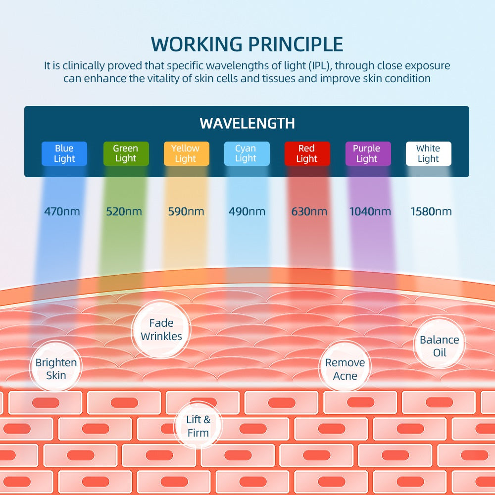 Unlock the secrets of radiant skin with our 7 Colors LED Light Therapy Facial Mask. This cutting-edge beauty device harnesses the power of various LED lights, each with distinct benefits for your skin.