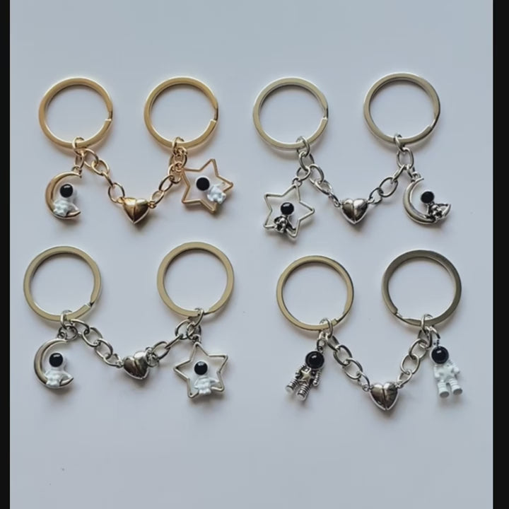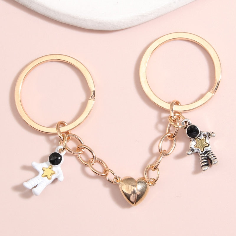 Astronaut Handmade Keychain with Magnetic Link Perfect gift for Couples