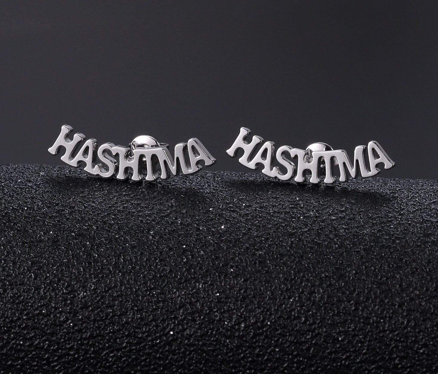 Discover the exquisite craftsmanship of our Handcrafted Personalized Name Earrings, where beauty meets personalization. Each earring is meticulously handcrafted with attention to detail, creating a unique and special piece of jewelry. The cursive initial nameplate design adds a touch of elegance and sophistication. These earrings are customized to feature the name or initials of your choice, making them a truly personalized accessory that holds sentimental value. Whether it's a gift for yourself or a loved one, these earrings are a beautiful representation of individuality and cherished connections.