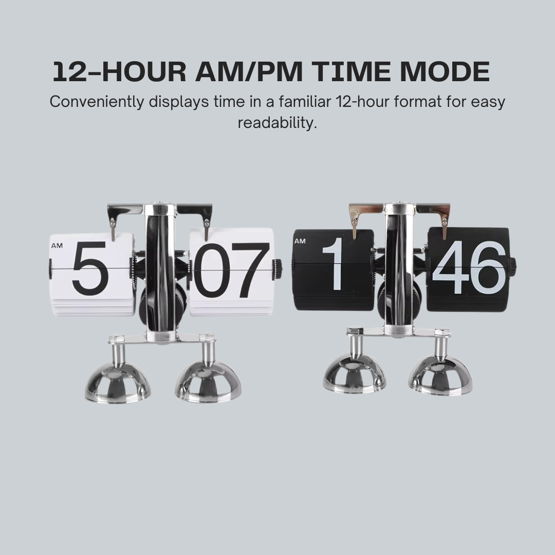 The Auto Flip Digital Clock is a stylish and functional addition to your home décor, featuring a 12-hour AM/PM time mode and impressive accuracy of ±90 seconds per month. Designed to operate within a temperature range of -10℃ to +50℃ (14℉ to 122℉), this clock is both cold and heat resistant. Made from durable metal and PVC, it comes in elegant white or black options to suit any aesthetic. Its unique retro design and luxurious appearance make it a chic statement piece, while the quartz movement ensures precise timekeeping. The minute hand is conveniently located on the right, allowing for easy time adjustments.