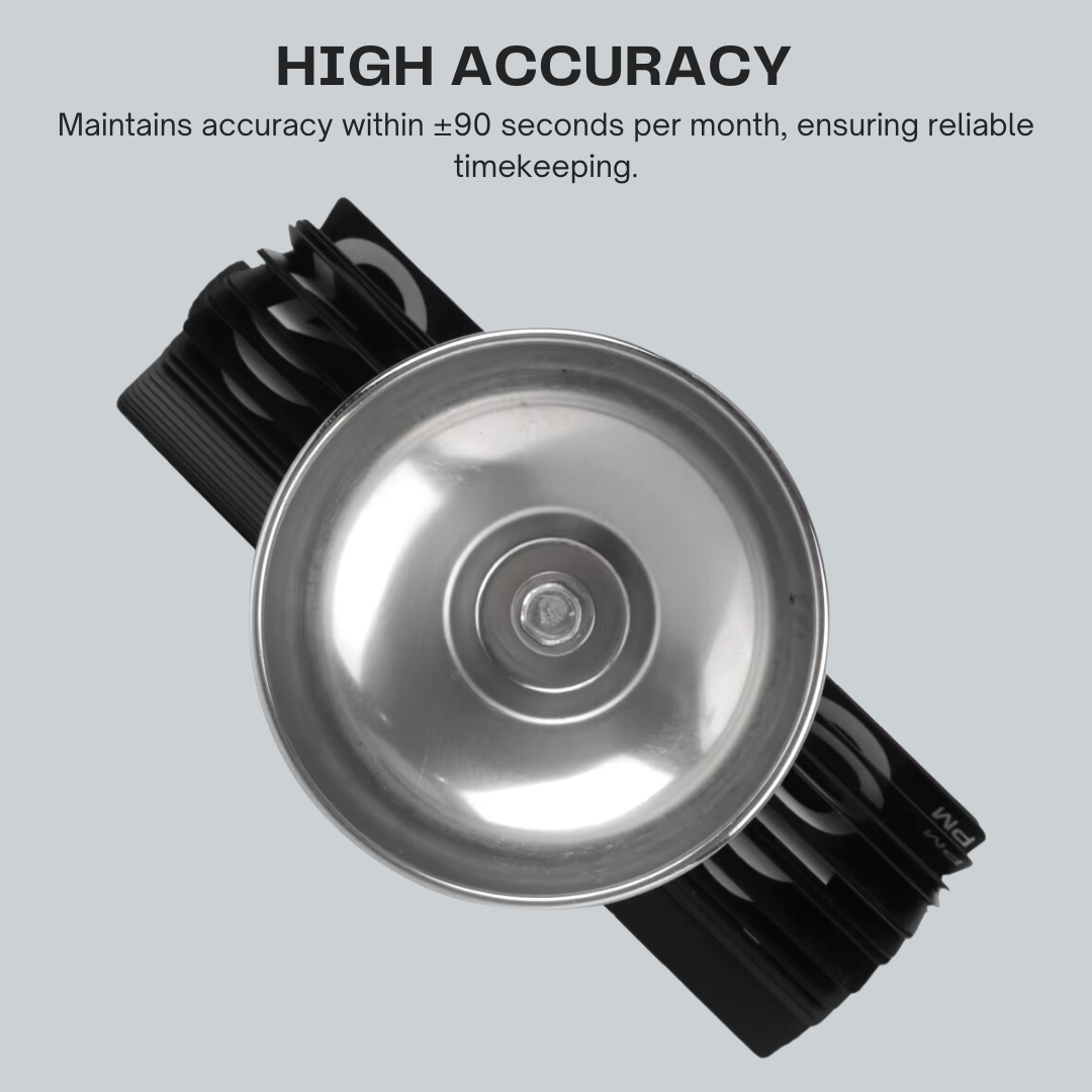 Maintains accuracy within ±90 seconds per month, ensuring reliable timekeeping.