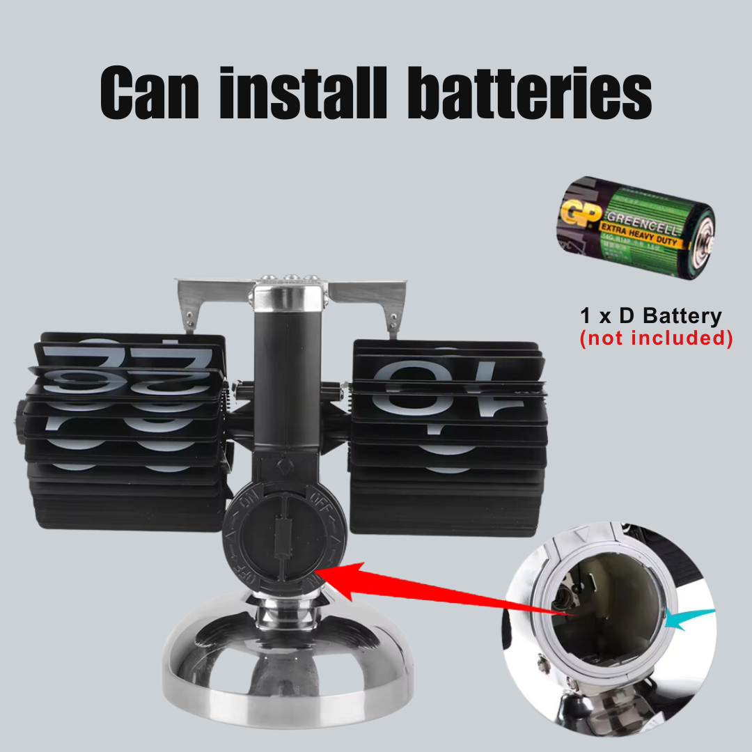 The Auto Flip Digital Clock requires one D battery, which is not included with the purchase.