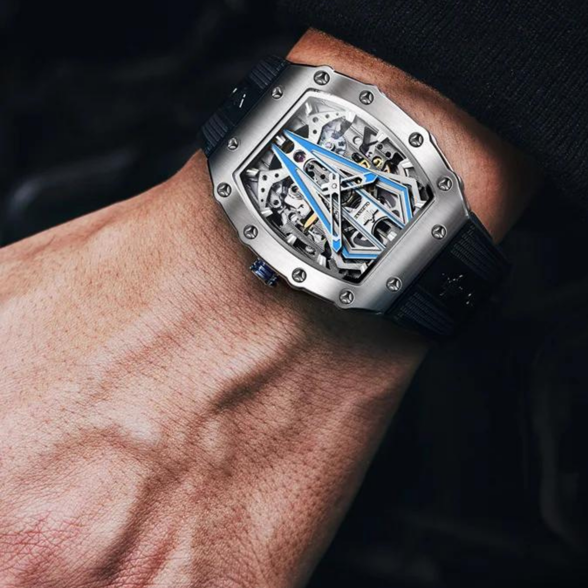 OUPINKE Luxury Mechanical Watch Skeleton Waterproof Silicone Strap