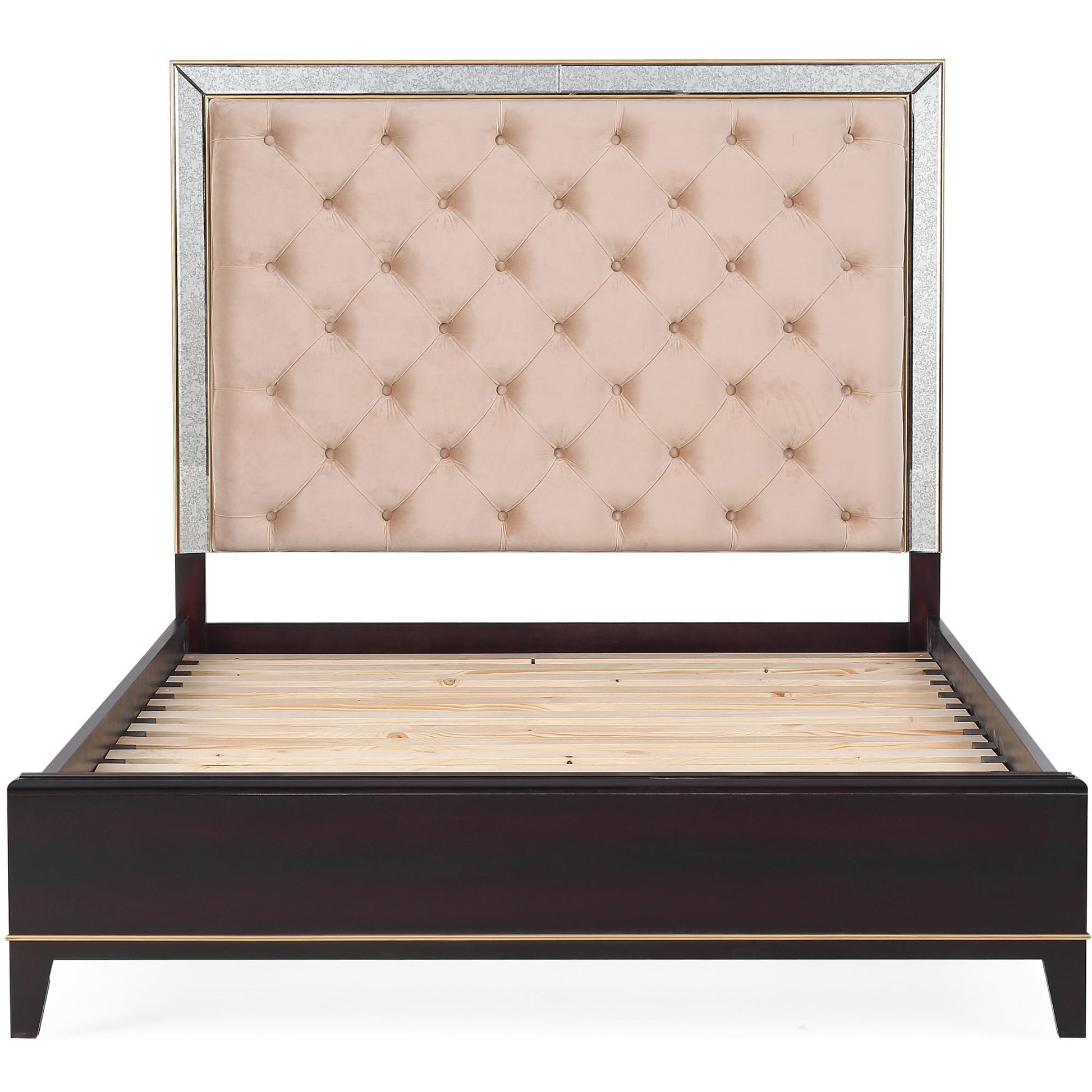 The hues in a bedroom should make you feel at ease. Fill your bedroom with Cherry and Antique Mirror colours by decorating it with this lovely queen bed.An Art Decor inspired bed designed in the traditional style gives a relaxing feel to your bedroom. The colours make an elegant light-reflecting statement for the bed. The good looking bed features 3 adjustable support legs and a luxurious deep-buttoned headboard upholstered with Polyester Velvet Fabric. It is made of solid timber: Cherry Veneer, Birch MDF, harvested in a sustainable way. The wood combination provides the bed with great strength and resilience. The MDF wood is resilient to moisture damage. The sleek and easy-to-assemble bed goes with a variety of interior decor styles and comes with a one-year warranty.