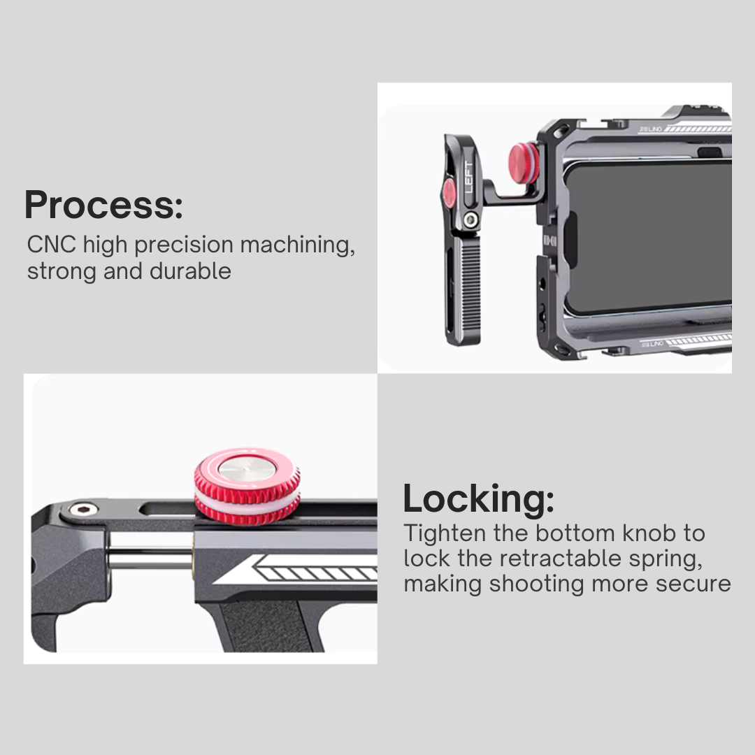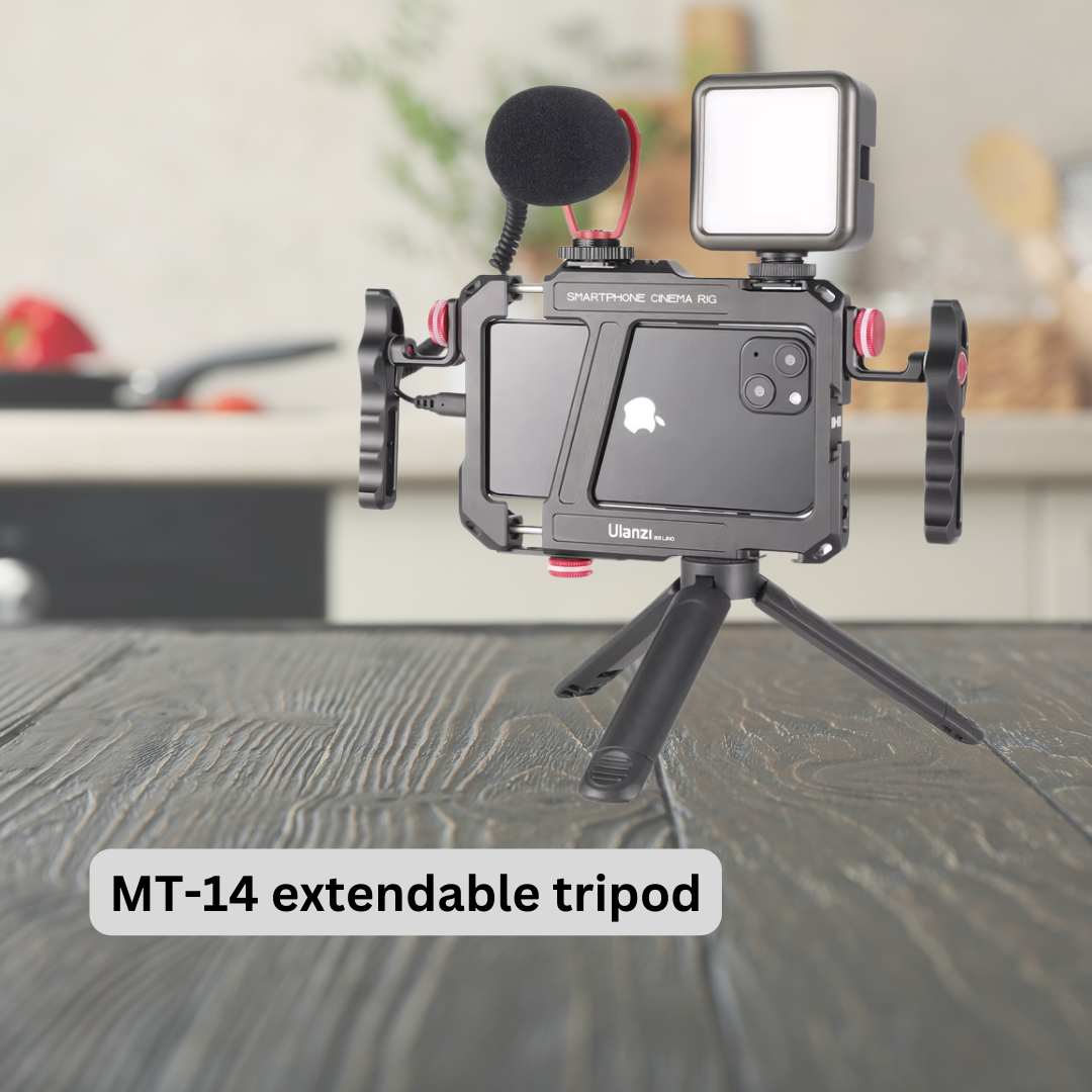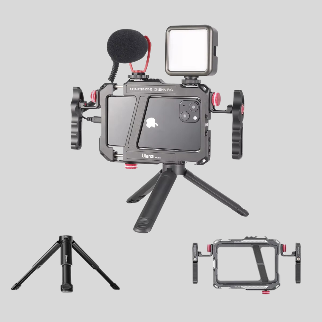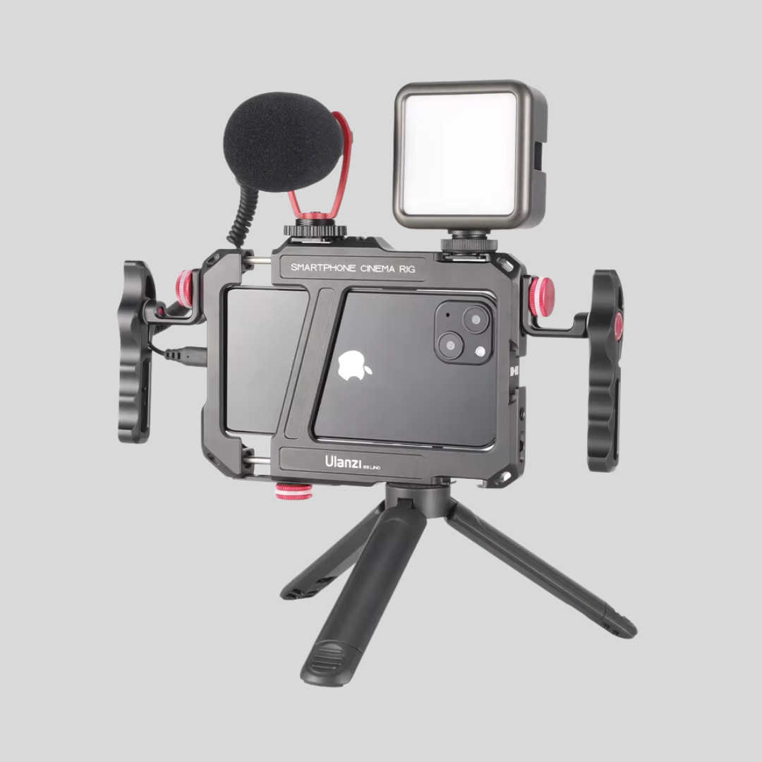 The Ulanzi Lino Vlog Kit is a lightweight and versatile photography accessory designed for smartphone videography. Weighing only 245g, it features a durable aluminum alloy construction for easy portability. The rig accommodates smartphones with widths ranging from 5.4" to 6.7" and includes spring tension adjustment for compatibility with iPhone 13 mini, iPhone 13 Pro Max, and Android phones. Its double handle design ensures stable shooting, while the adjustable handle angle provides a better grip for precise control. With multiple interfaces, including ten 1/4" screw ports, four cold shoe mounts, and two Arri locating holes, the Lino offers extensive expansion options for various accessories, making it an essential tool for any content creator.
