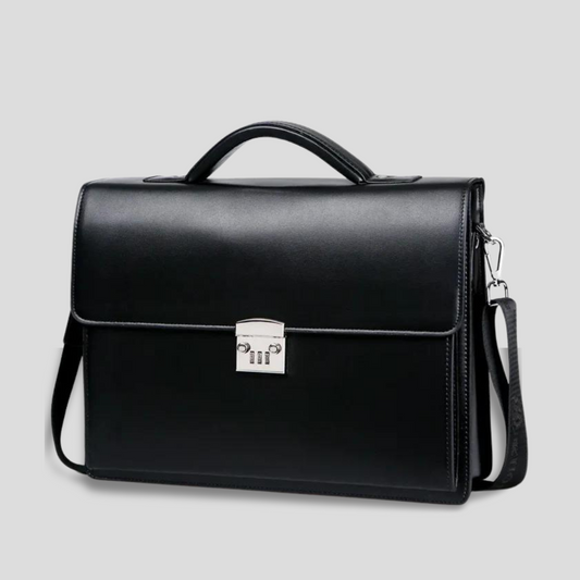 Stylish PU Leather Laptop Business Bag with Password Lock Professional Men's Diagonal Briefcase