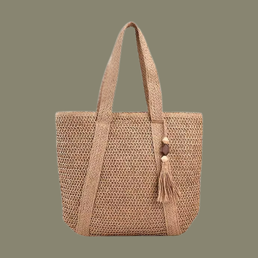 Summer Ladies' Hand-Woven Handbag – Fashionable, Large-Capacity Tote with Tassel Pendant for Shopping and Beach Days