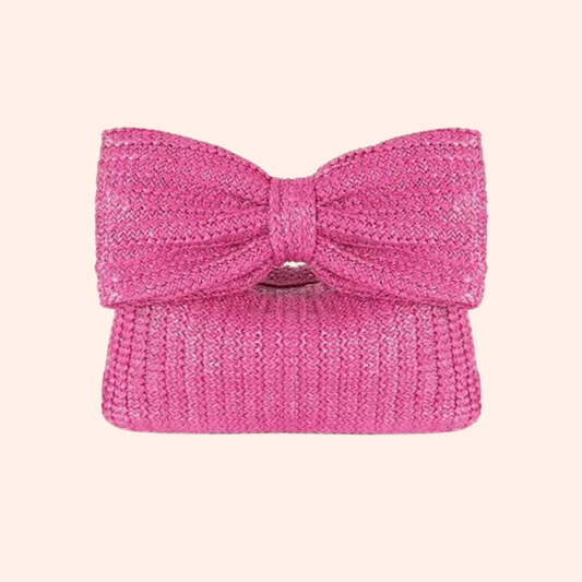 Summer Straw Woven Clutch Bag – Women's Knotted Purse with Bow, Luxury Design Evening Handbag for Parties and Beach