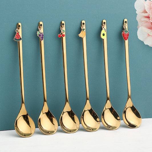 Stainless Steel Spoons Stirring Spoon with Fruit Pendant Coffee Mixing Spoon Dessert Spoon Table Decor Party Gift Kitchen Tool