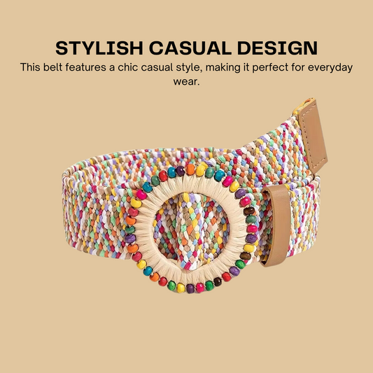 Trendy Women's Boho Colorful Straw Belt with Round Buckle – Wide Classic Summer Beach Waistband for Girls