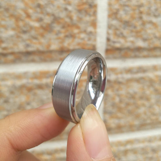 Newshe 8mm Wide Matte Brushed Tungsten Carbide Wedding Bands for Men Silver Color Charm Rings Trendy Jewelry Size 8-13