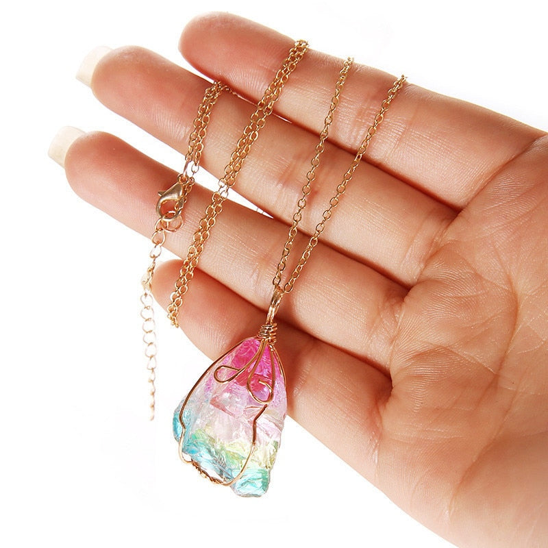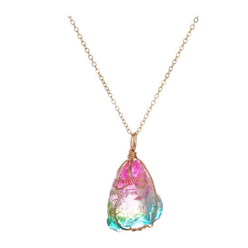 Order your 1Pcs Irregular Rainbow Stone Natural Crystal Fashion Crystal Chakra Rock Necklace today and add a touch of natural beauty and elegance to your wardrobe!