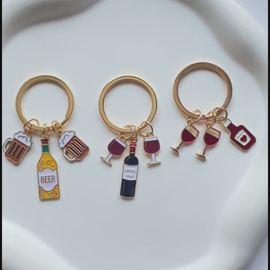 Enamel Keychain Beer Key Ring | Beer Cup, Red Wine Key Chain | Bar Souvenir Gift for Women and Men | Handbag Accessory, Car Hanging Jewelry