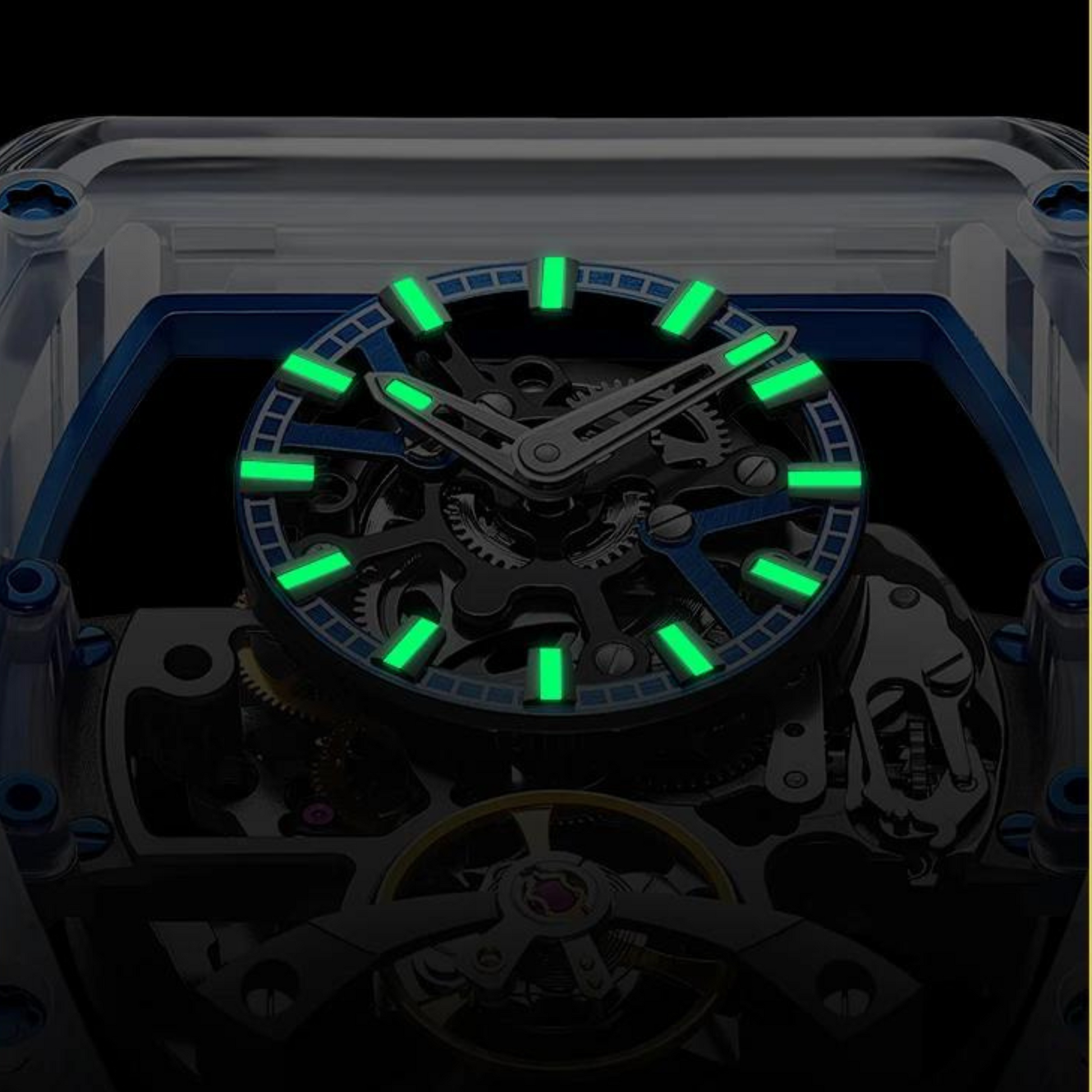 The watch strap is made of flexible, anti-allergic, and durable fluorine rubber, ensuring comfort and durability. The night vision decoration on the strap enhances visibility in low-light conditions, combining practicality with style.