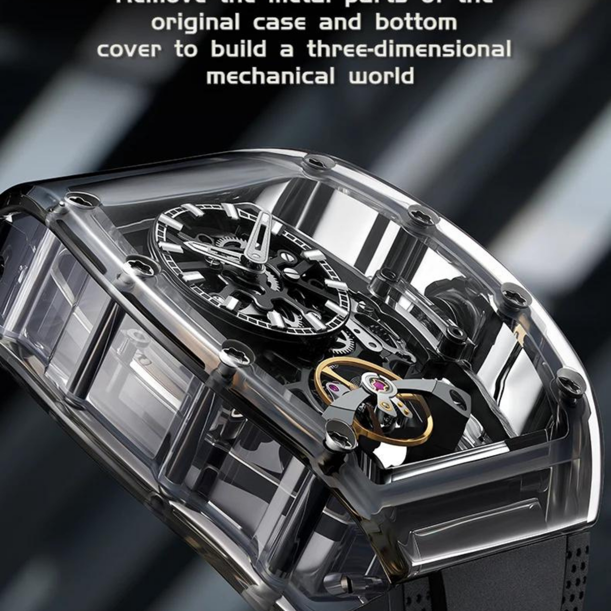 Packaged in a wooden box, this business-style mechanical wristwatch combines innovative design with high-quality materials, offering a distinctive timepiece for those who appreciate the artistry of watchmaking.