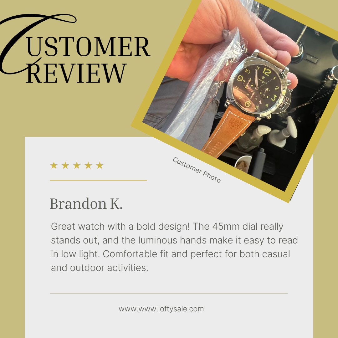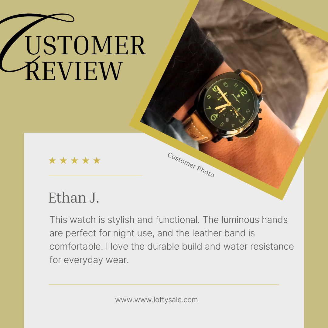 Durable Design: Stainless steel case and leather band, with a 3Bar water resistance for everyday wear, including swimming.