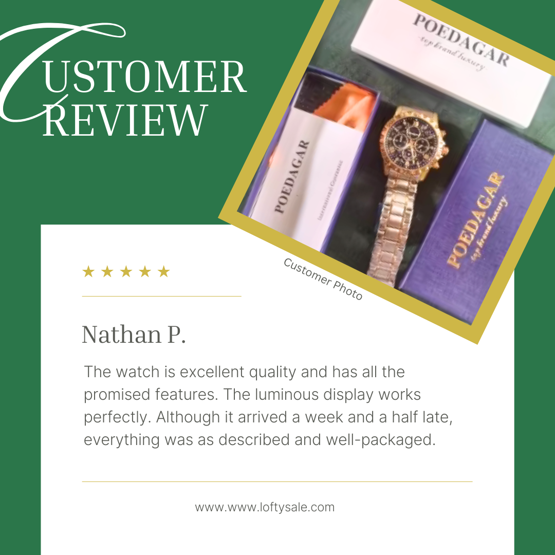 Waterproof & Luminous Design: Water resistance up to 3ATM and luminous hands make it suitable for sports and outdoor activities, even in low-light conditions.