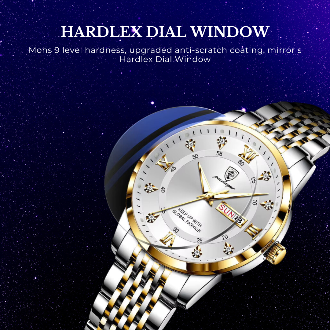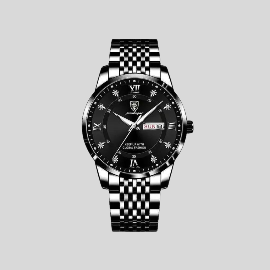 Luminous Hands & Complete Calendar – Easy-to-read in low light with full date and week display.