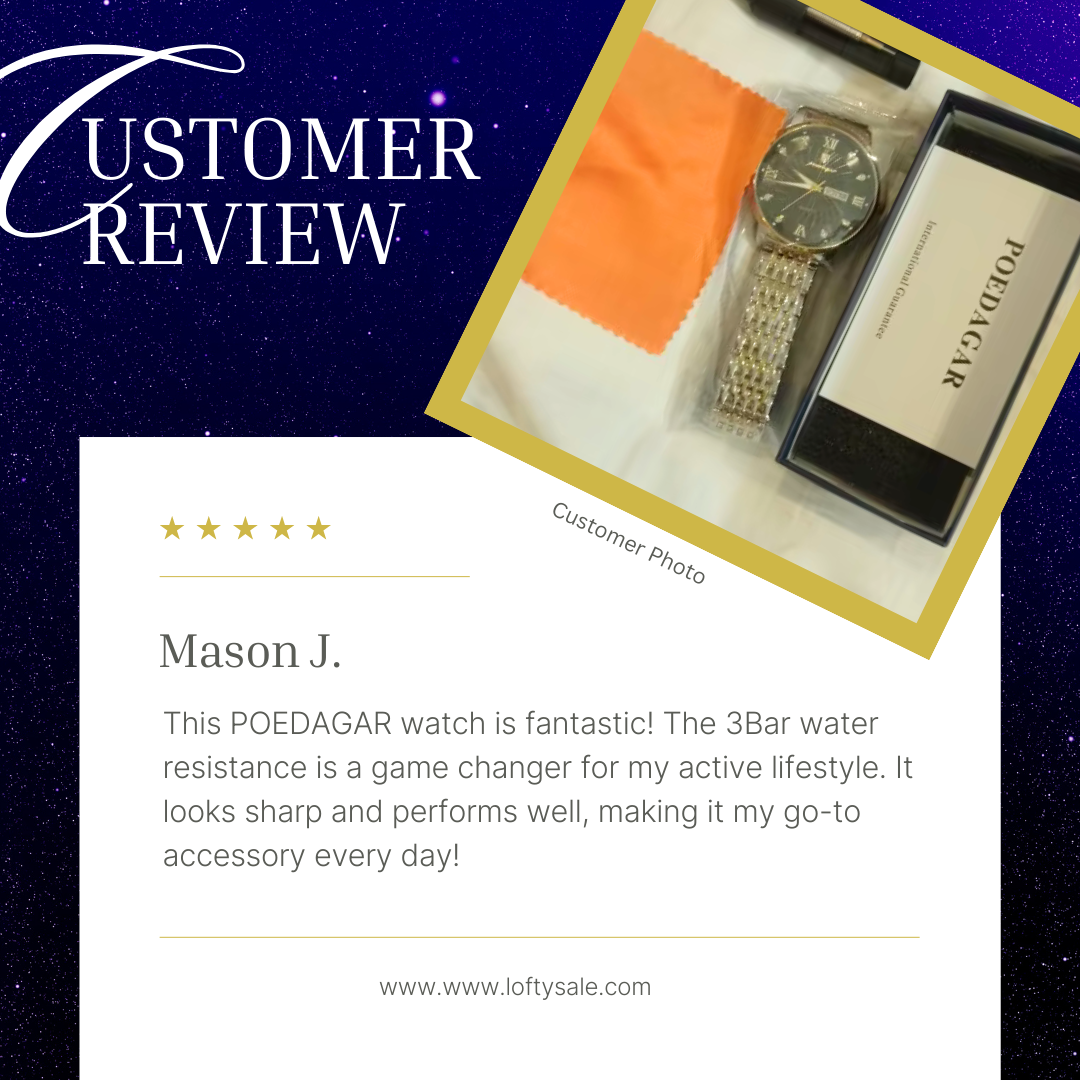 3Bar Water Resistant & Shockproof – Suitable for swimming and everyday wear with reliable protection.