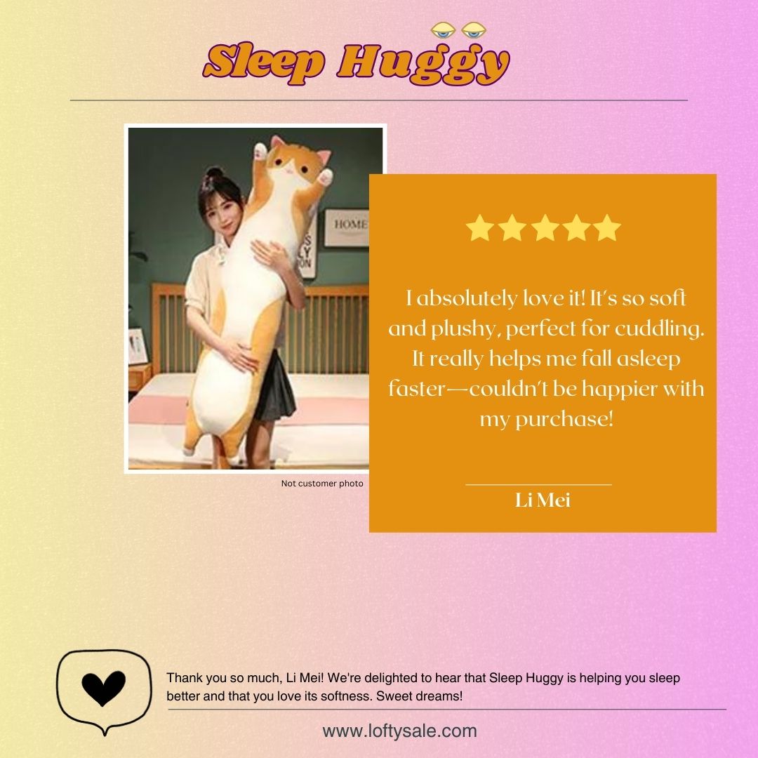 Sleep Huggy is the perfect sleep companion, designed to improve your sleep quality and enhance your mood. Hugging this adorable, cat-shaped pillow can reduce stress and promote relaxation by releasing oxytocin and other feel-good hormones.