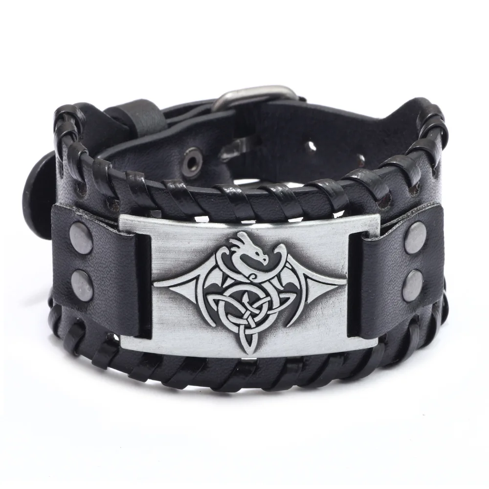 The Trendy Viking Bracelet is a fashionable accessory that is designed to complement any outfit. The bracelet is made from high-quality leather material that is both durable and comfortable to wear. It features an intricate woven pattern that is reminiscent of the Viking era, giving it a unique and trendy look.