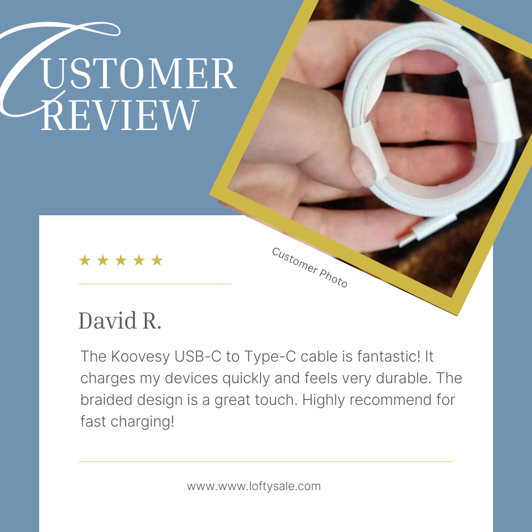 The Koovesy USB-C to Type-C Fast Charging Cable is designed for high-performance charging and data transfer, delivering up to 60W of power for various devices. This versatile cable is compatible with smartphones, including iPhone 15, Android, Samsung, and Huawei, as well as MP3/MP4 players, cameras, smart devices, IP cameras, and VR/AR glasses. Constructed with a durable braided material, it ensures longevity and resistance to wear and tear. Certified by CE for safety and quality, the Koovesy cable is an essential accessory for anyone seeking efficient charging and reliable connectivity for their devices.