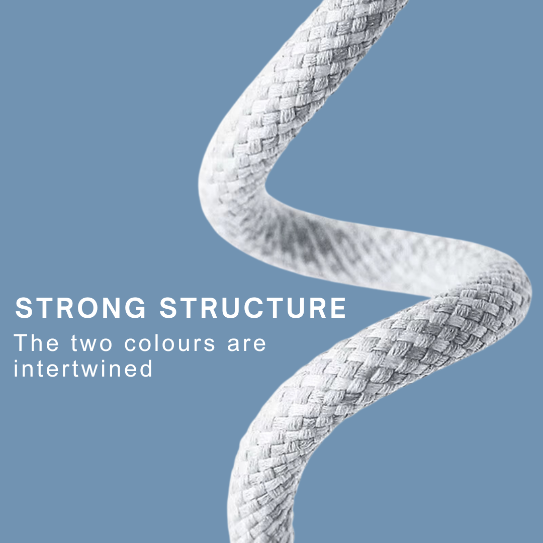 Constructed with a robust braided material, enhancing durability and resistance to everyday wear and tear.