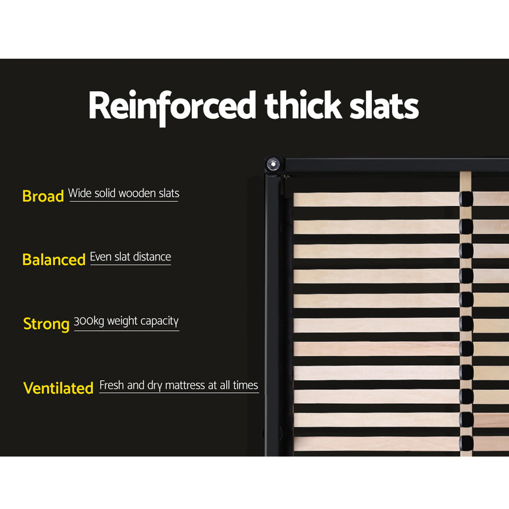 A good mattress certainly deserves an equally fine bed frame and base. And our Artiss Tino Bed Frame is just the perfect companion piece for your favoured mattress. With its exquisite modern lines, elegant finish and quality faux linen fabric upholstery, the bed frame is well-crafted with solid wooden slats that help distribute body weight evenly throughout the ensemble. The high-density foam within the fabric delivers generous padding while the fabric itself is also breathable and non-woven for longevity of use. Not least, heavy-duty metal connectors help keep the structure stable and firm even with robust use. Designed to fit standard-size mattresses effortlessly, our bed frame is guaranteed to give you pleasant dreams with every sleep.