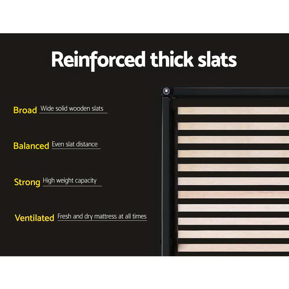 From first glance, our contemporary Artiss Tiyo Gas Lift Bed Frame looks phenomenal. The premium PVC leather tufted headboard and sides all exude fine craftsmanship and luxury. But there is more. Lift up the bed base and you will find ample storage space under the wooden arched slat base. The gas lift system and hand strap enable you to effortlessly lift the bed to store items you wish to hide away until a later date. The wooden arched slat base is also designed to flex appropriately so that it can better distribute the weight exerted on it and stop disturbances in the night if your partner likes to move about. Enjoy your wonderful sleep in more ways than one with our innovative Tiyo Gas Lift Bed Frame, it is definitely brains and beauty!