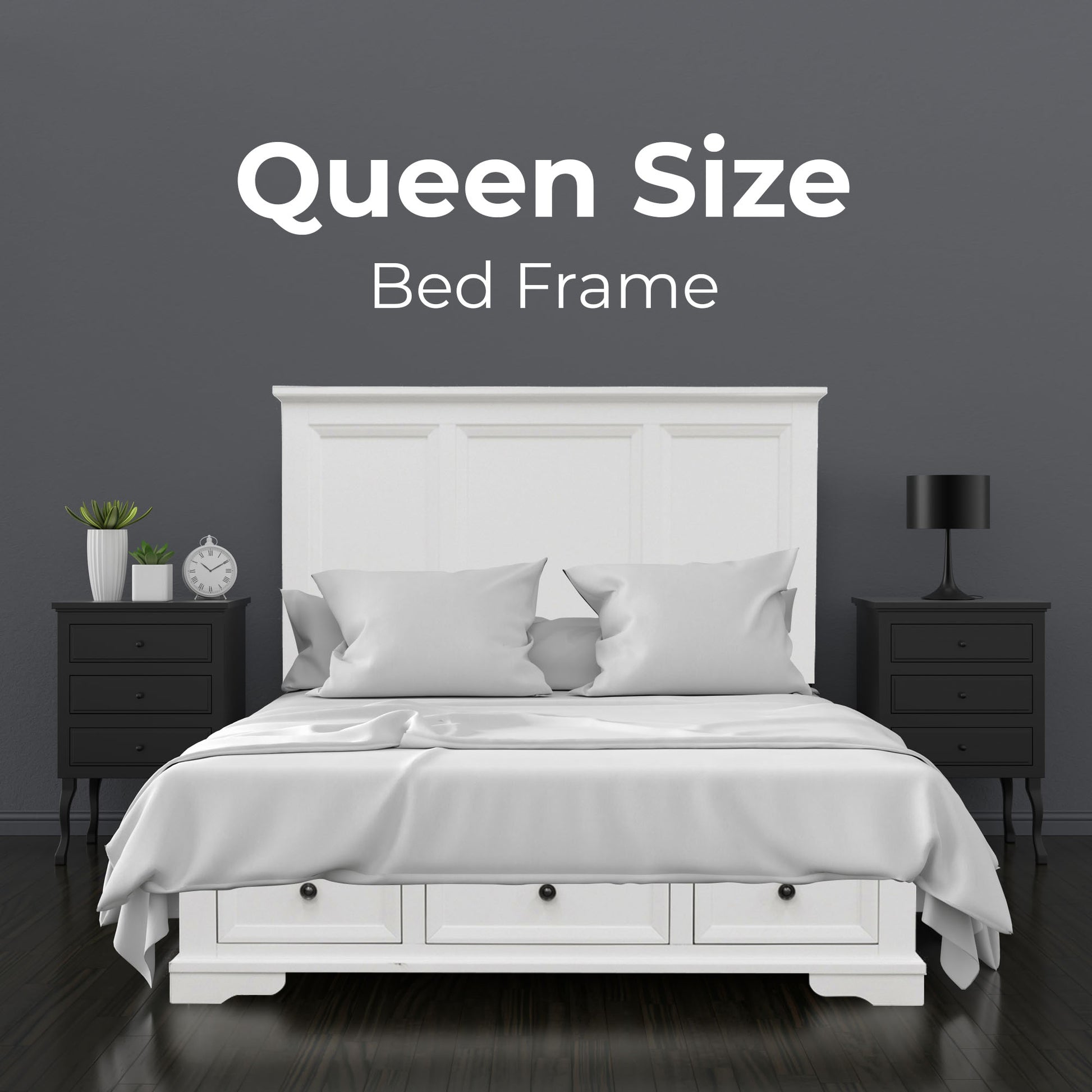 Celosia 5pc Queen Bed Frame Bedroom Suite Bedside Dresser Mirror Package - White