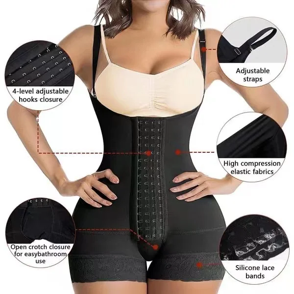 The European and American Four-Breasted Body Shaping Jumpsuit is ingeniously designed to provide immediate and long-term body sculpting and support: