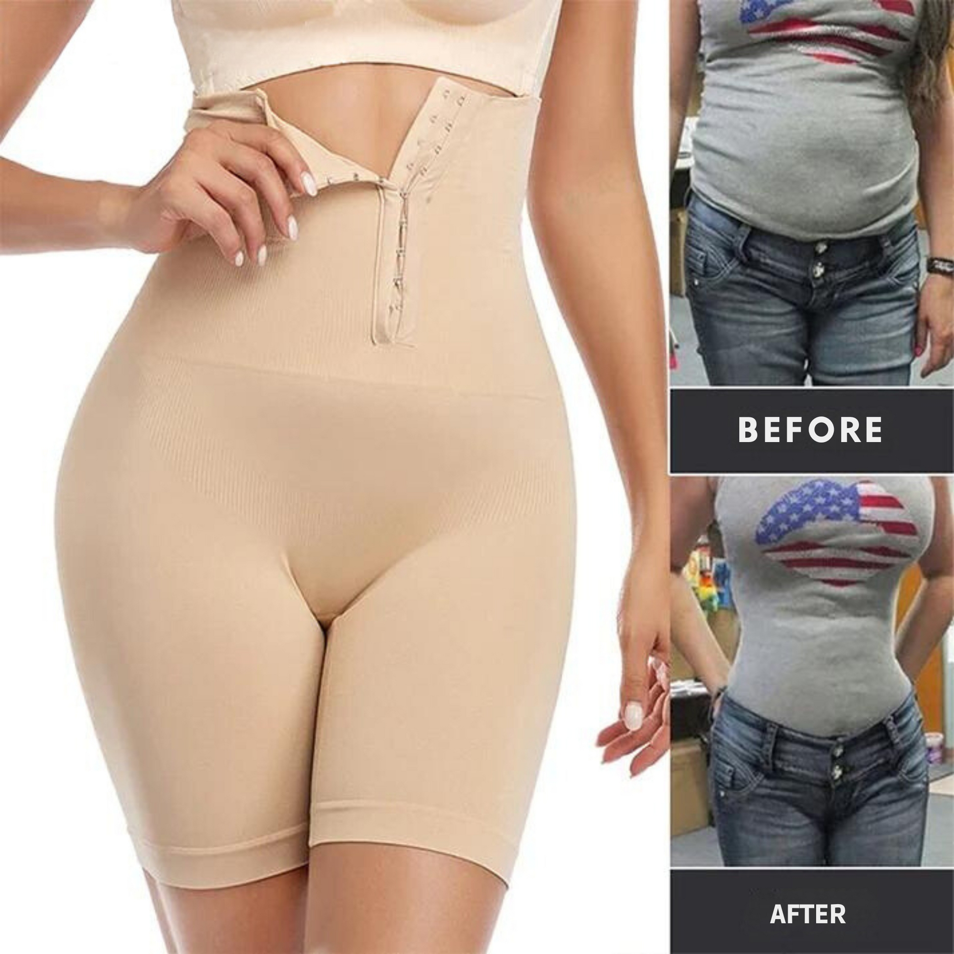 The ultra-high waist design provides a 360-degree abdomen and waist control, while the 45-degree hips improvement lifts the buttocks instantly.