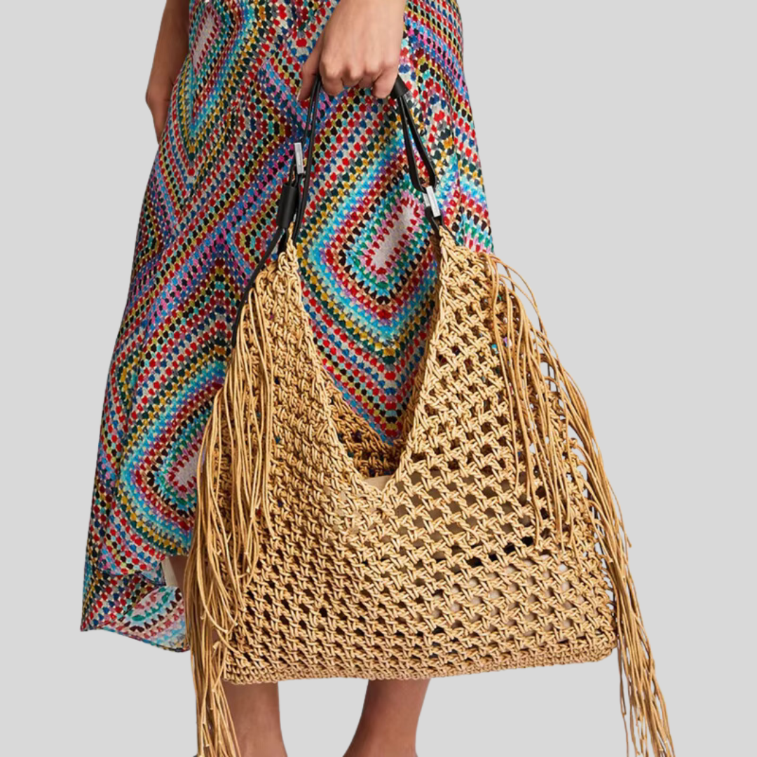 Luxury Hollow-Out Hobo Bag for Women: Spacious Tassel Straw Beach Purse