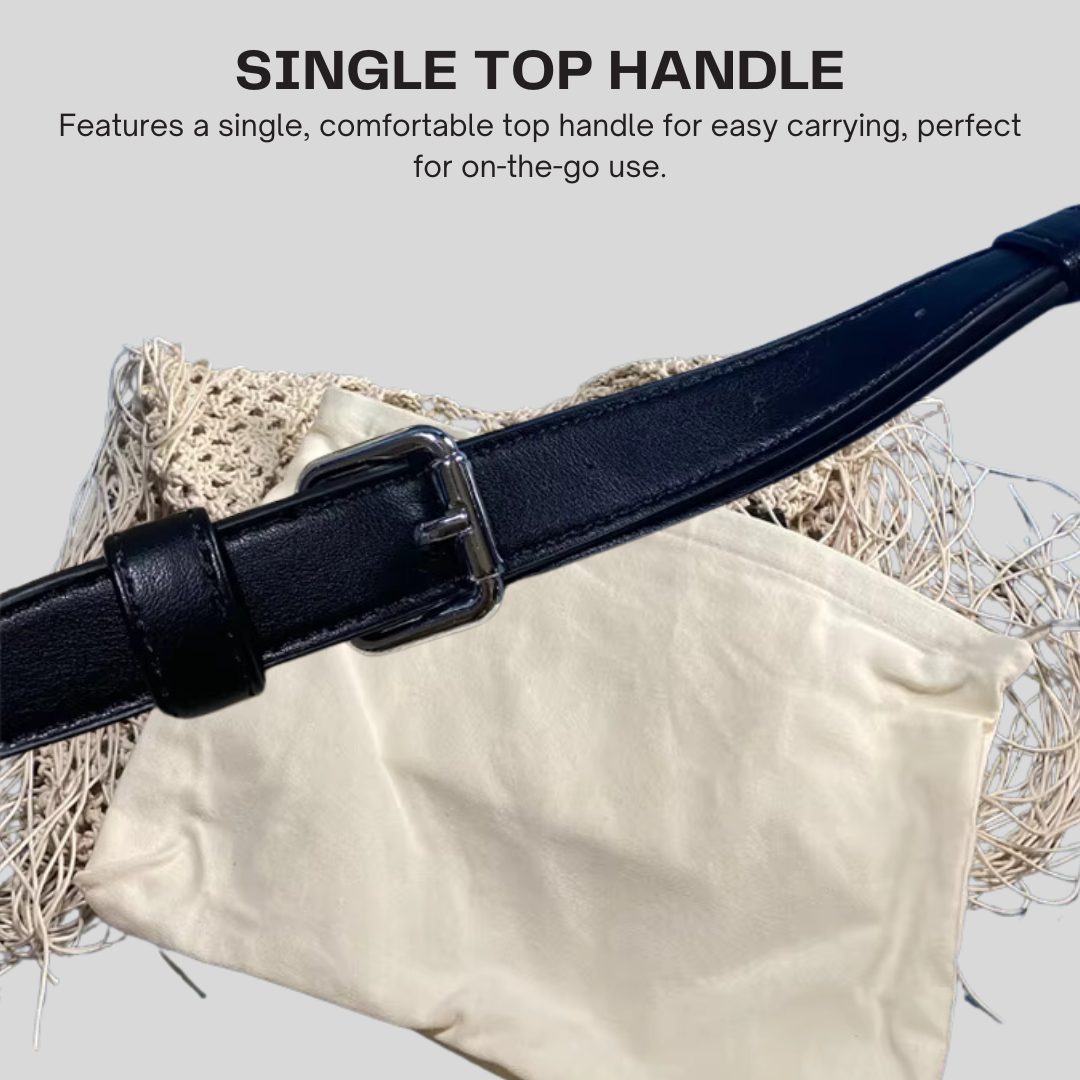 Crafted from soft straw, this handbag offers a lightweight and comfortable carrying experience.