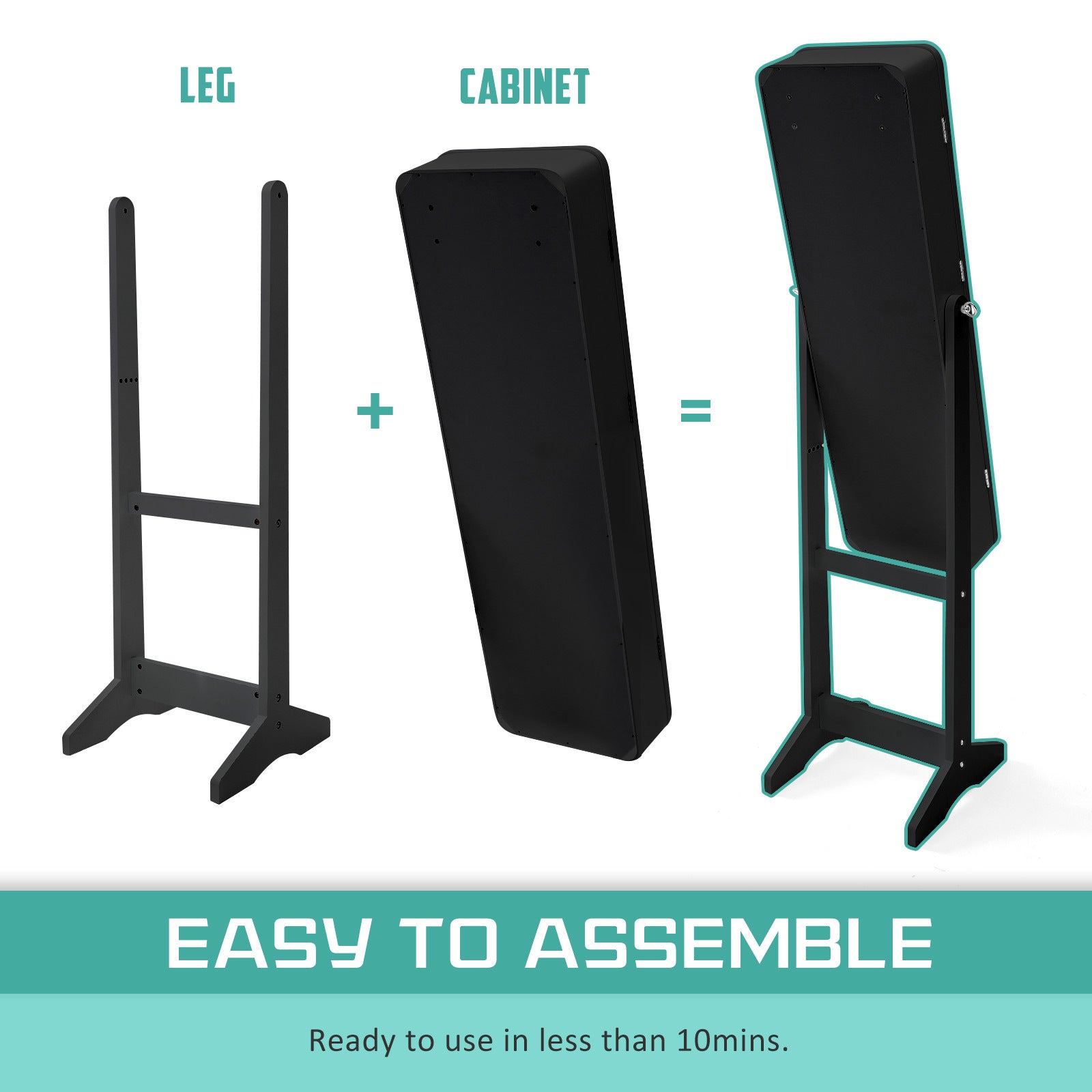 La Bella Black Mirror Jewellery Cabinet FLASHY 146cm Organiser LED