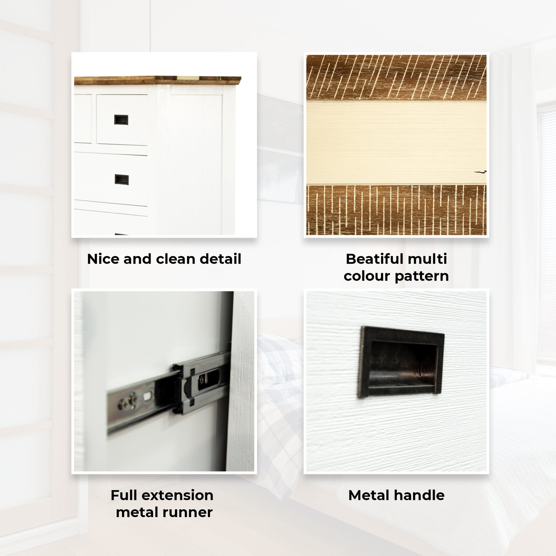 A neat and tidy bedroom makes it easier to unwind. Get this 5-drawer tallboy and unwind in a bedroom where everything has its own place. The modern-rustic slimline design tallboy gives the value of orderliness to your bedroom. The tallboy is striking in appearance, with a roomy storage area made of sustainably harvested solid acacia wood. The tallboy is thoughtfully designed with 2x over 3x drawers to store your valuables and bedroom items. The drawers have smooth extension runners and metal handles that are smooth on touch. The furniture piece goes with a variety of decor types because it is multi-coloured. The fully assembled tallboy comes with a one-year warranty.