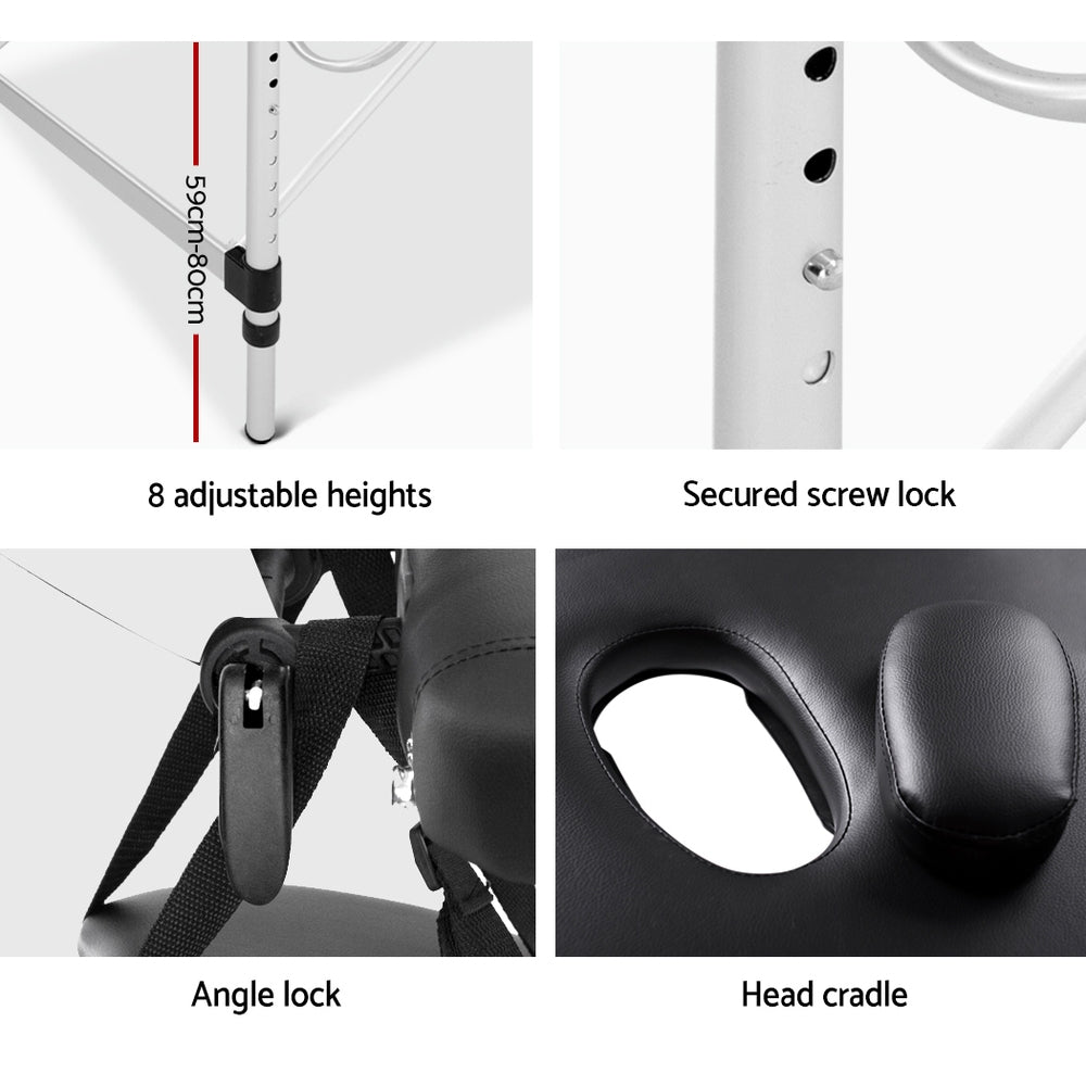 Zenses 3 Fold Portable Aluminium Massage Table - Black