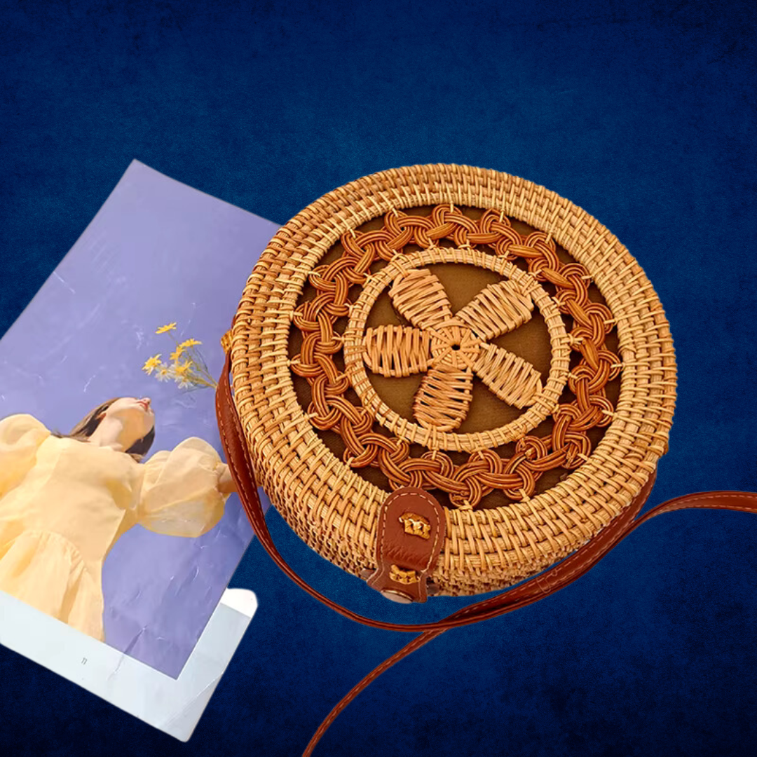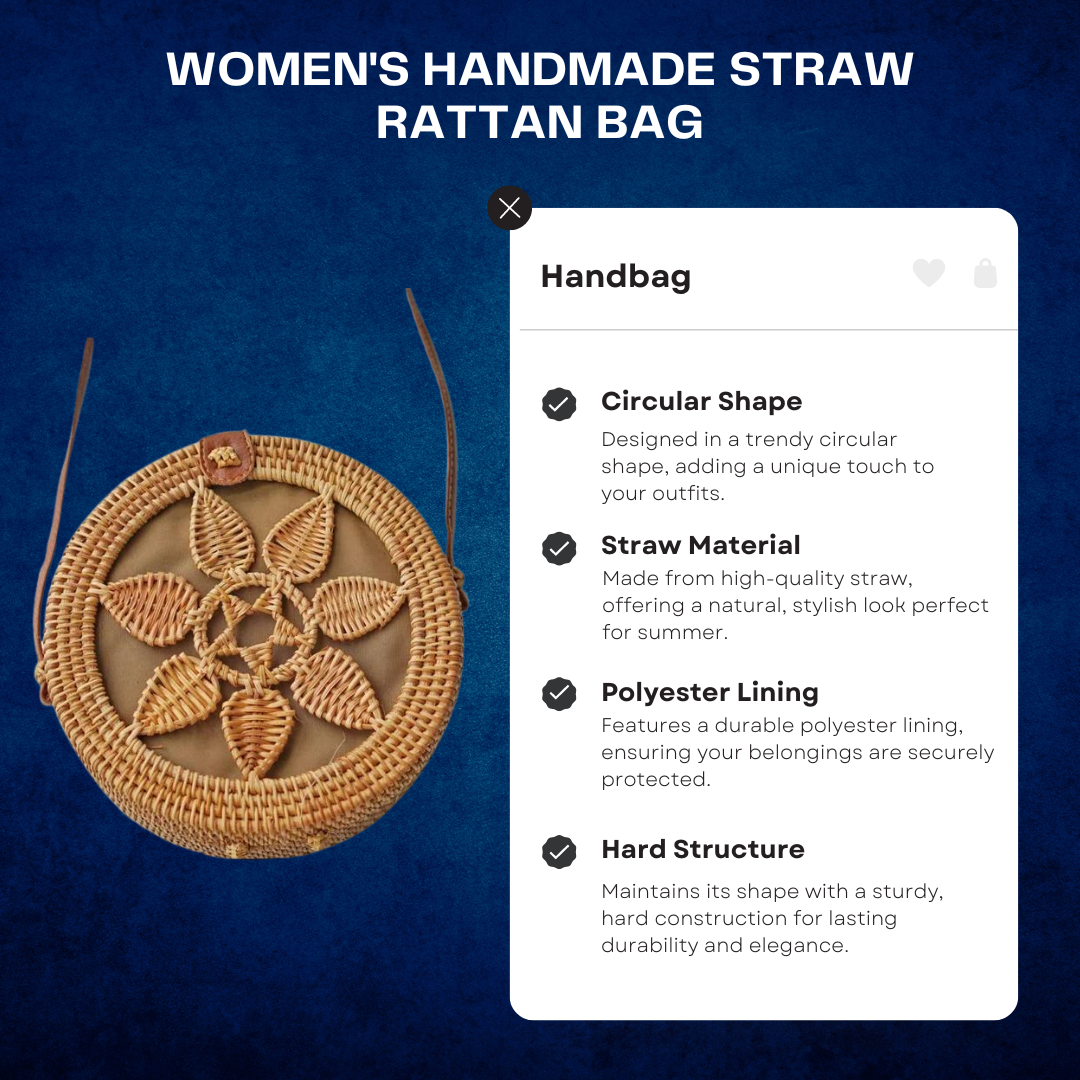 This bohemian-style circular handbag is made from high-quality straw with a durable polyester lining, offering a unique combination of fashion and functionality. The hard-structured design ensures it maintains its shape, while the solid pattern and single shoulder strap add to its effortless charm. Ideal for women who love boho fashion, this shoulder bag is perfect for casual outings or beach days. With a secure string closure, it keeps your belongings safe and stylishly stored, making it a versatile accessory for any summer wardrobe.